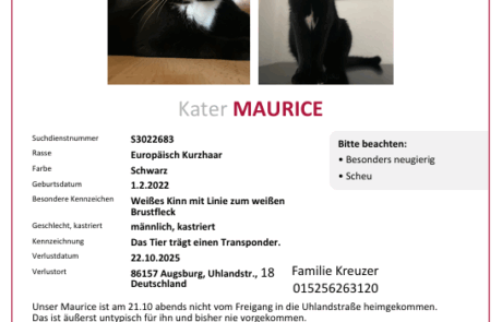 | Entlaufen | Augsburg Pfersee Uhlandstraße |